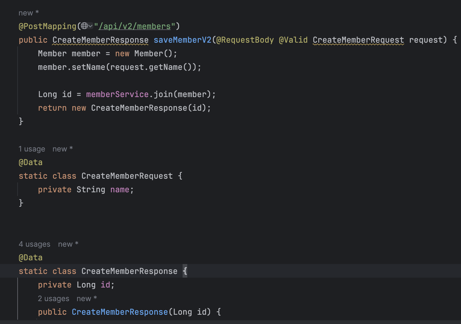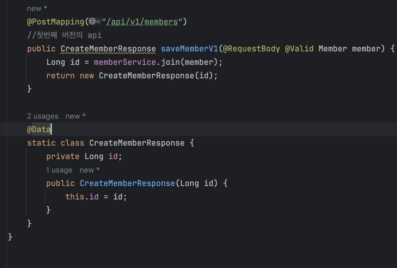 public CreateMemberResponse saveMemberV1(@RequestBody @Valid Member member)
