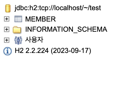 이런게 나오게 되는데 test.mv.db가 있는지 확인하고 연결을 눌러야함