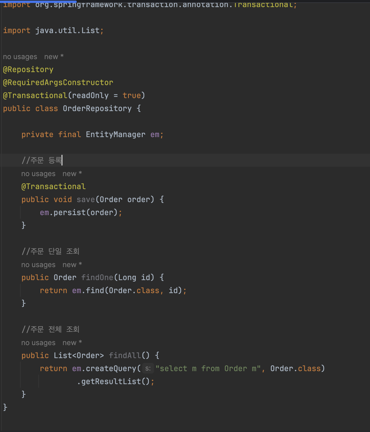 주문 리포지토리 개발