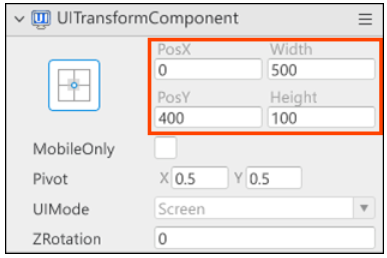 UITransformComponent 는 배치한 텍스트 박스의 위치와 크기를 설정할 수 있는 컴포넌트