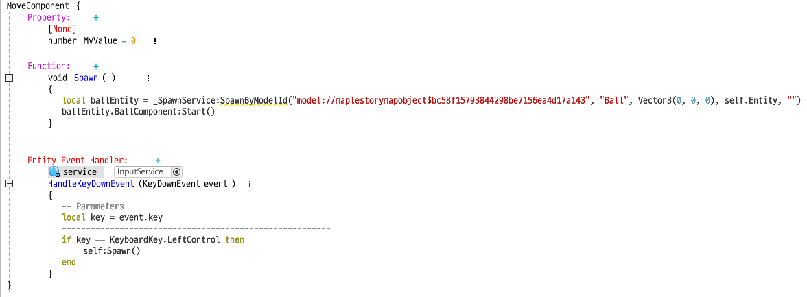 Spawn() : 스폰할 엔티티의 모델을 가져와 엔티티에 포함된 BallComponent의 Start 함수를 호출함. 이 때 스폰할 엔티티에는 무조건 BallComponent가 포함되어 있어야하고, BallComponent에는 Start 함수가 존재해야함.