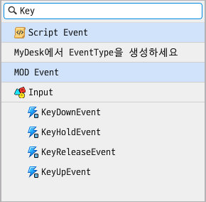 해당 Entity Event Handler: 에서 ‘+’ 를 누른다음, KeyDownEvent를 눌러 해당 이벤트가 발생할 시 상황은 다음과 같이 처리.