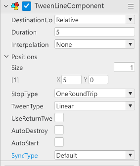 Start() : TweenLineComponent에서 설정한 Duration을 로컬 변수 duration에 받아 엔티티의 움직임이 시작되고 duration만큼 기다렸다 사라지게 함.