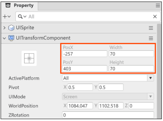따라서 UI 위치 좌표는 PosX PosY를 통해 설정할 수 있음.