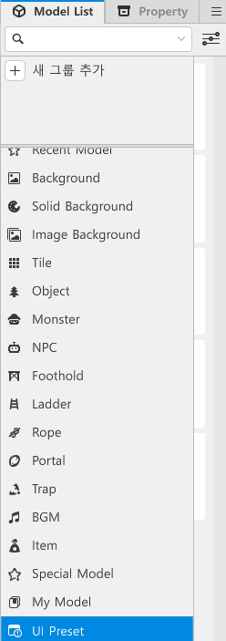 1. 메이커의 UI 버튼을 눌러 UI 에디터로 이동하여 UIGroup 에서 해당 그룹으로 이동