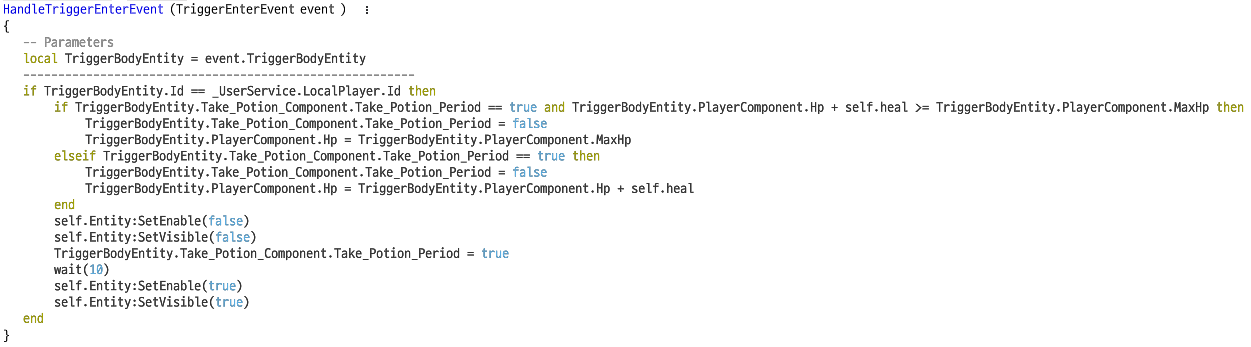 포션 또한 여러 번 TriggerEvent가 발생할 수 있으므로 장애물과 마찬가지로 period를 적용시켜 일정 시간 내에 다시 TriggerEvent가 발생하는걸 방지해주기
