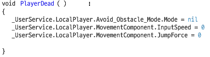 또한 inputspeed와 jumpforce,mode가 다 0이거나 nil로 되어있으므로 다시 돌려주는 playerAlive()라는 함수를 실행시켜주는데 이때 이 함수는