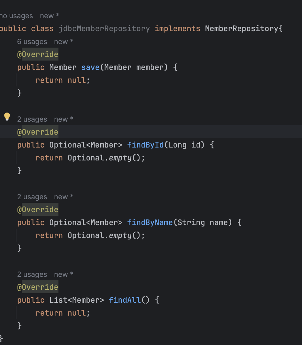 그 후 기능들을 정의해줄 Member repository 클래스를 만들어준다