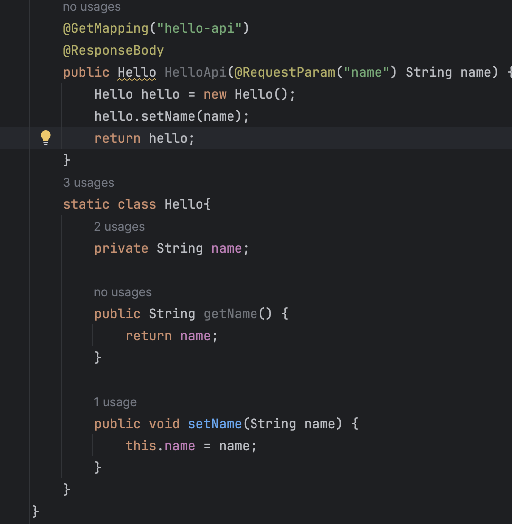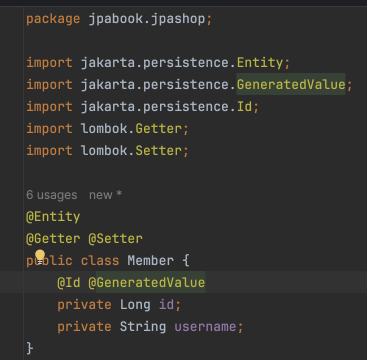 아까 lombok을 설정해줬기에 getter setter의 코드를 에노테이션으로 확 줄일 수 있다.