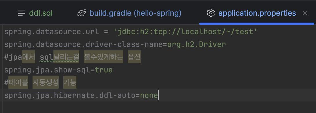이런식으로 처음 연결을 해줘야한다 그래야 파일명으로된 .mv.db폴더가 생기게된다