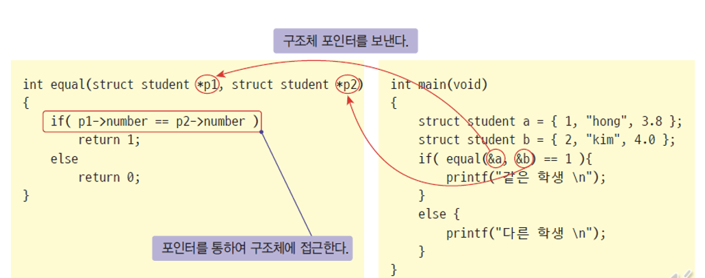 같은 구조체 변수끼리 대입은 가능하지만 비교는 불가능