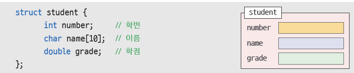 서로 다른 자료형의 개별변수를 묶는 방법이 바로 구조체임