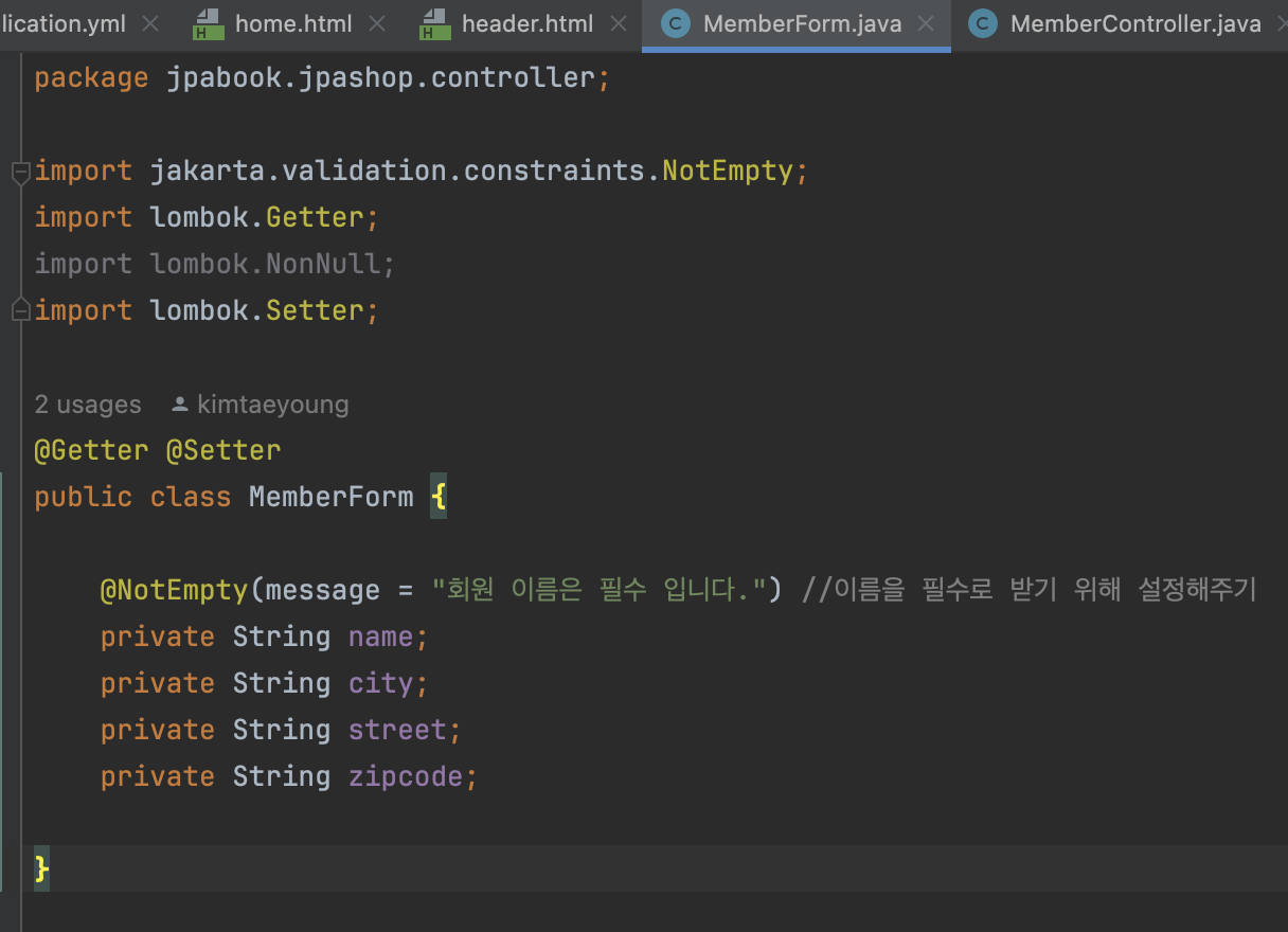 (파라미터가 많으면 새로운 DTO 클래스를 파서 값을 넣어주기)