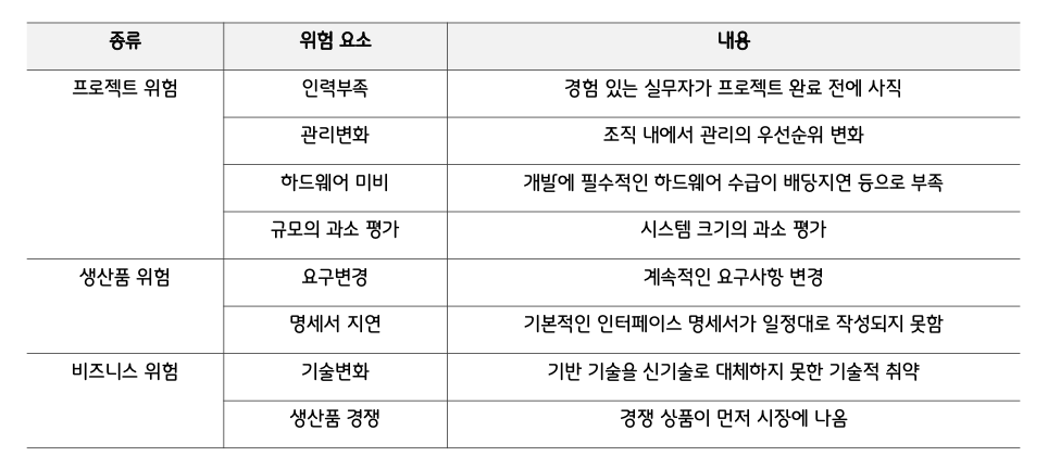 2. 대형 프로젝트는 개발기간동안 외부환경이나 내부 정책이 변화할 소지가 크며, 이를 개선하려면 이전 단계로
