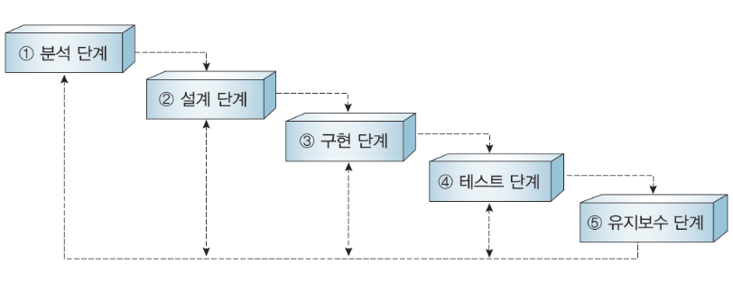 분석,설계,구현,테스트,유지보수 단계로 이루어짐