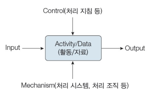 외부객체(시스템 외부에서 시스템과 정보 주고받는 사용자등 외부객체), 프로세스(시스템안에서 정보 처리,변환),