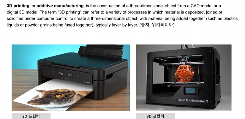 3d 모델링이 된것을 직접 물체로 출력하는 것임.