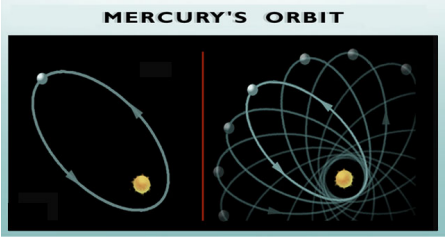 아이슈타인이 일반상대론을 이용하여 수성의 근일점 이동을 정확히 설명.