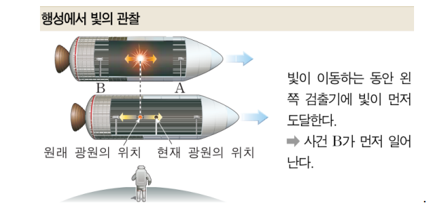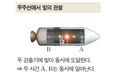 동시성의 상대성: 어떤 관측자에게 동시에 일어난 일로 보이는 사건들이 다른 관측자에게는 동시가 아닐 수 있다.
