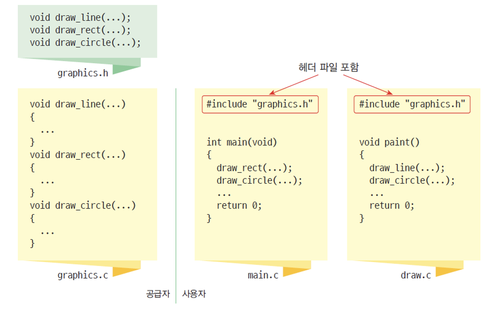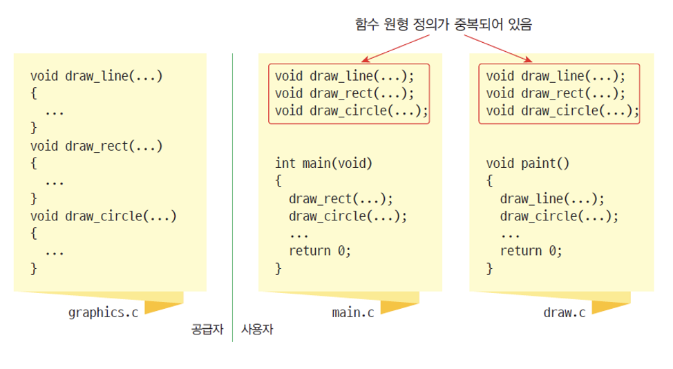 헤더 파일을 사용하지않으면 함수원형 정의를 매번 있는대로 많이 써놔야됌