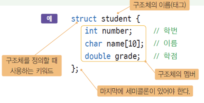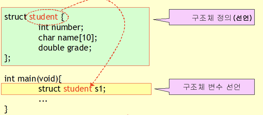서로 다른 자료형의 개별변수를 묶는 방법이 바로 구조체임